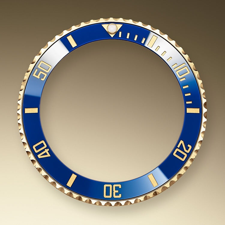 Rolex Submariner Date, 41mm watch of polished 18k Yellow Gold. This model has blue dial with a polished 18k Yellow Gold hour, minute and seconds hands in Mercedes-logo and Breguet-style sword shape with luminous fill. Applied polished 18kt Yellow Gold rimmed doty and index hour markers with luminous fill. Fine printed minute/seconds track on the dial rim. Highly legible Chromalight display with long-lasting blue luminescence. Polished 18kt Yellow Gold patented "Triplock" locking crown ensuring that the crown screws down onto the Oyster case as securely as a submarine hatch. The dial closed by a Scratch-resistant Sapphire Crystal and solid case back made. The Watch has Centre hour minute and seconds hands. Stop-seconds for precise time setting. Date window at 3 o'clock with a cyclops magnifier. The watch is equipped unidirectional rotatable polished 18k Yellow Gold bezel with knurled corners for enhanced grip. Blue "Cerachrom" bezel insert, made of ceramic which is extremely hard, durable and highly scratch-resistant. Ceramic has excellent corrosion resistant properties and is unaffected by ultraviolet rays so the color will not fade. It features a 60-minute immersion scale engraved in yellow gold with a luminous point at the origin. The movement is mechanical self-winding 3235, containing 31 Jewels and 70 hours of power reserve. The 18k Yellow Gold Rolex Oyster bracelet of brushed outer links and polished center links with folding Oysterlock safety clasp with Rolex Glidelock extension system. The water resistance is up to 300 meters/1000 feet.?