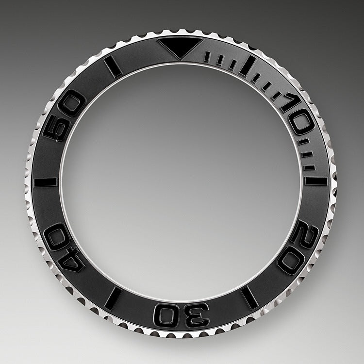 Rolex Yacht-Master 42 watch with polished 18k White Gold case. This model has black dial with a polished 18k White Gold hour and minute hands in Mercedes-logo and Breguet-style sword shape with luminous fill. Polished 18k White Gold seconds hand. Applied polished 18k White Gold rimmed index doty hour markers with luminous fill. Fine printed minute/seconds track on the dial rim. Highly legible Chromalight display with long-lasting blue luminescence. Date window displayed at the 3 o'clock position with a cyclops magnifier. Polished 18k White Gold patented "Triplock" locking crown ensuring that the crown screws down onto the Oyster case as securely as a submarine hatch. The dial closed by a Scratch-resistant Sapphire Crystal and solid case back made. Stop-seconds for precise time setting. The watch is equipped polished 18kt White gold bidirectional rotating bezel with a ribbed edge for a sure grip. Matt black Cerachrom bezel insert in ceramic with polished finished raised Arabic Numerals and graduating indexes. The movement is mechanical self-winding 3235, containing 31 Jewels and 70 hours of power reserve. The Rolex Oysterflex bracelet of flexible metal blades overmoulded with high-performance elastomer with folding Oysterlock safety clasp with Rolex Glidelock extension system. The water resistance is up to 100 meters/330 feet.